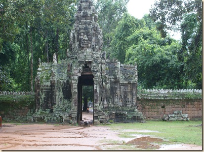 斑蒂喀提寺建於12世紀末 -13世紀初,此處遺址顯現的是別於吳哥恢弘氣勢之外的玲瓏與精致,她靜靜地守候在【皇家浴池 Sras Srang 】的旁邊,傳說是國王和皇后泳后小憩的地方,是由砂岩所建造的神廟,穿過小四面佛的門洞,沒有了高高在上的神佛彙聚的殿堂,而只有親切的回廊似的院落,幽深的回廊,似迷宮般穿插著,可以很輕易地從一個門裏看到重重疊疊地許多門,透過這些門,你可以看到遙遠的景致,仿佛時空隧道一般,門的另一端就是那個世紀的繁華與永恒。